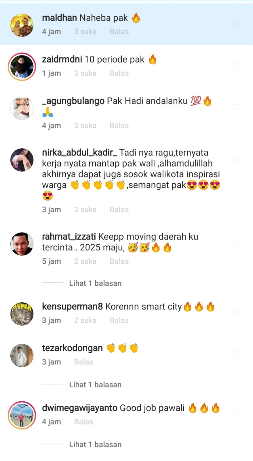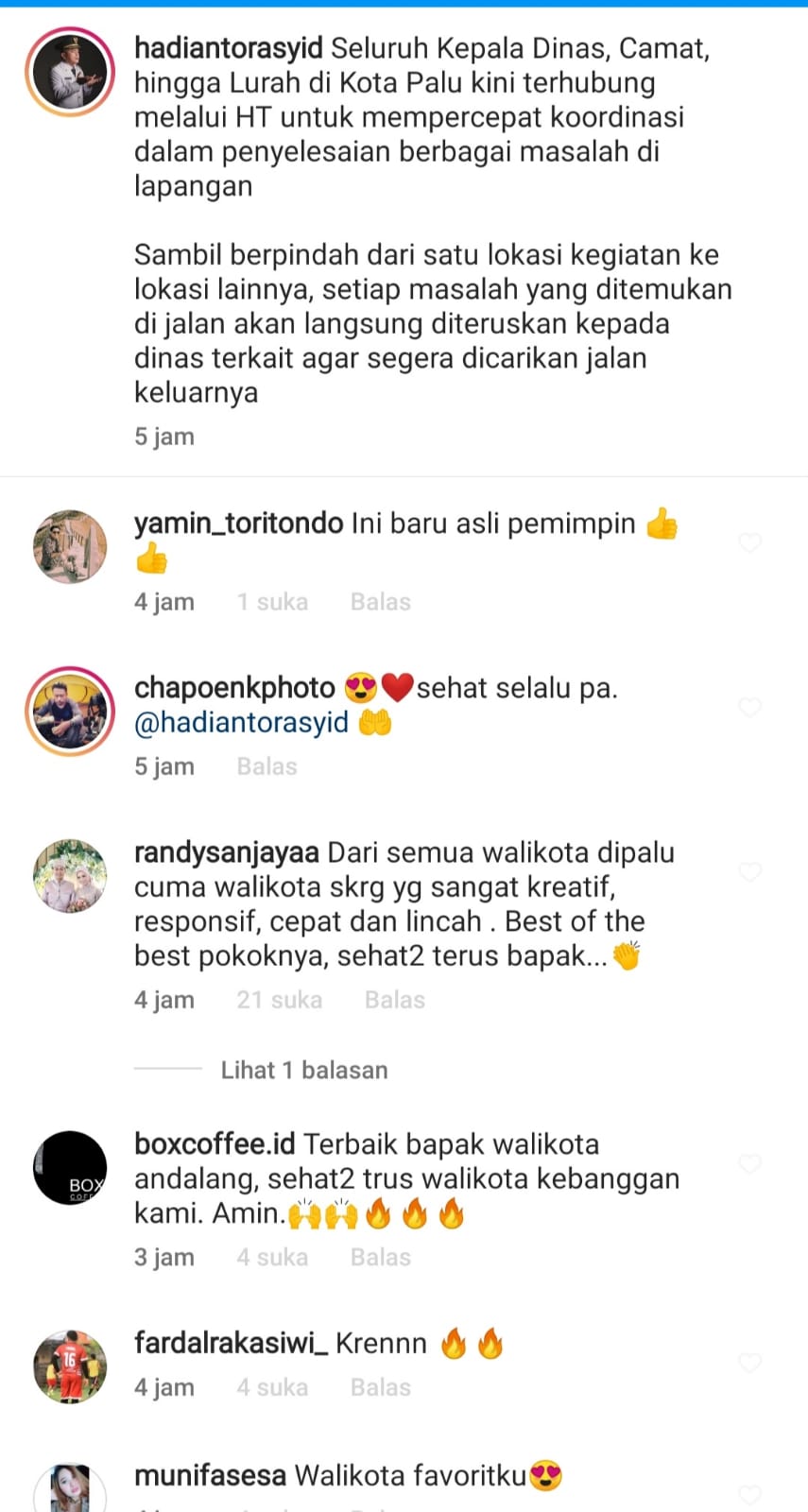 Berikut beberapa komentar-komentar awarga Kota Palu pengikut instagram Walikota :