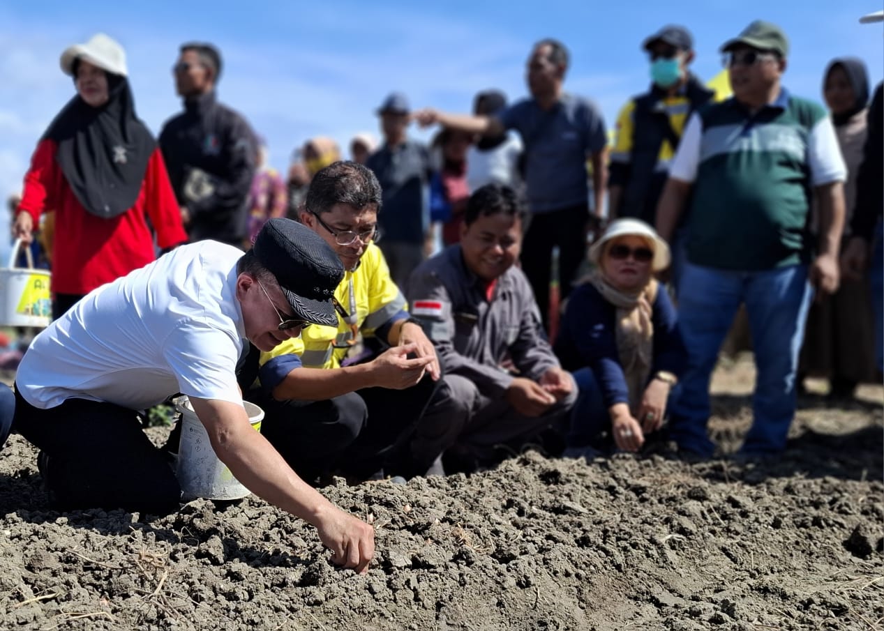 PALU, CS – PT Citra Palu Minerals (CPM) bersama Pemerintah Kota (Pemkot) Palu dan Kelompok Tani (Poktan) Karya Petamba, melakukan penanaman perdana bawang batu khas lembah Palu, di lahan pertanian seluas 19 hektar di Kelurahan Tanahmodindi, Kecamatan Mantikulore, Kota Palu, Senin (12/05/2025).