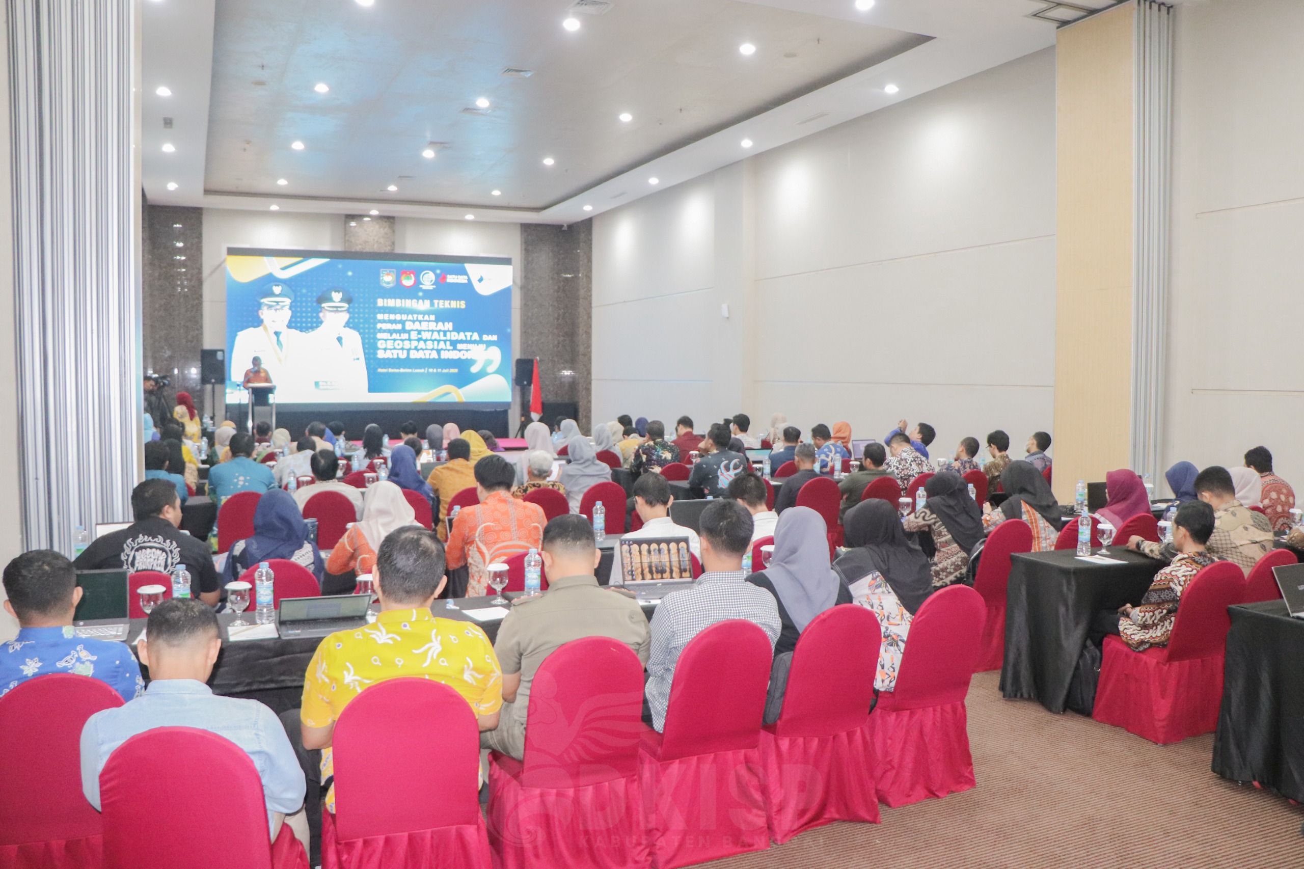 Para peserta yang terdiri dari para admin pengelola data dari seluruh OPD, lembaga teknis, dan tenaga pengolah data instansi daerah mendapatkan pembekalan terkait pengoperasian E-Walidata, teknik verifikasi dan validasi data, serta penerapan informasi geospasial dalam mendukung program-program pembangunan sektoral.