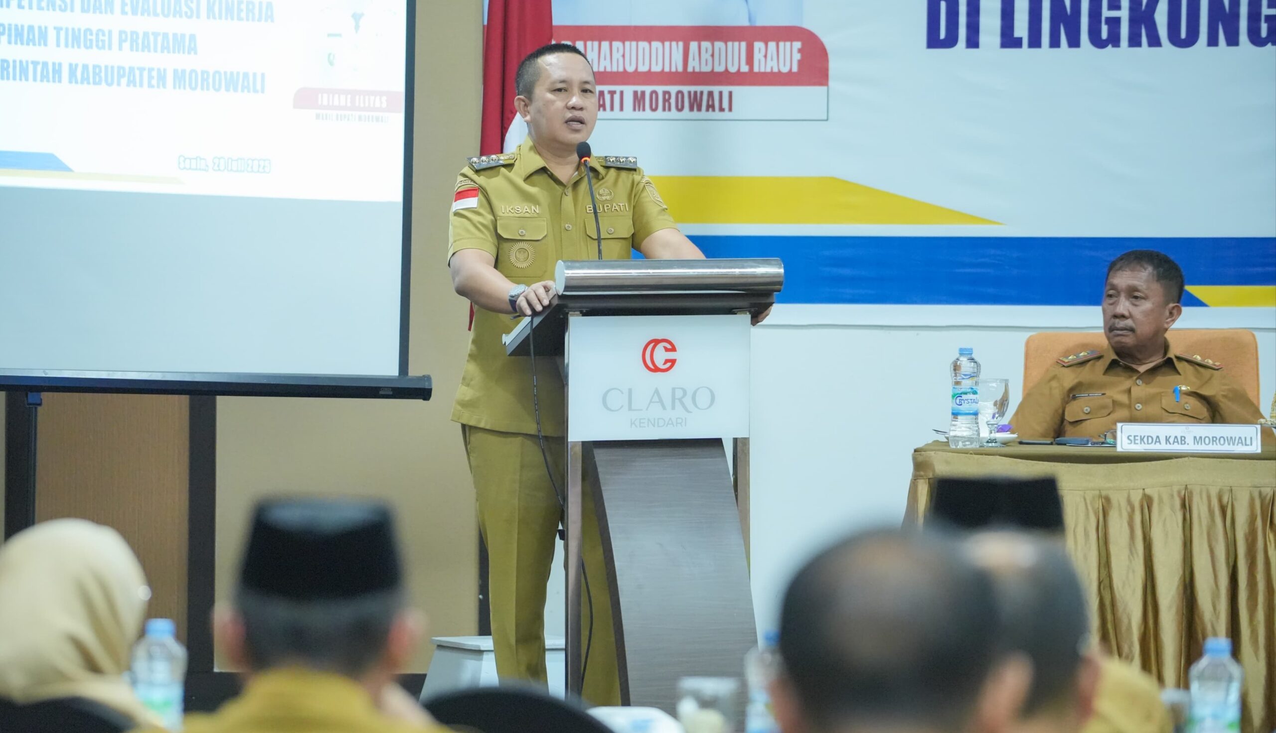 MOROWALI, CS – Bupati Morowali, Iksan Baharudin Abdul Rauf, secara resmi membuka pelaksanaan Uji Kompetensi dan Evaluasi Kinerja Pejabat Pimpinan Tinggi Pratama (PTP) di lingkungan Pemerintah Kabupaten Morowali, di Hotel Claro, Kota Kendari, Senin (28/7/2025).