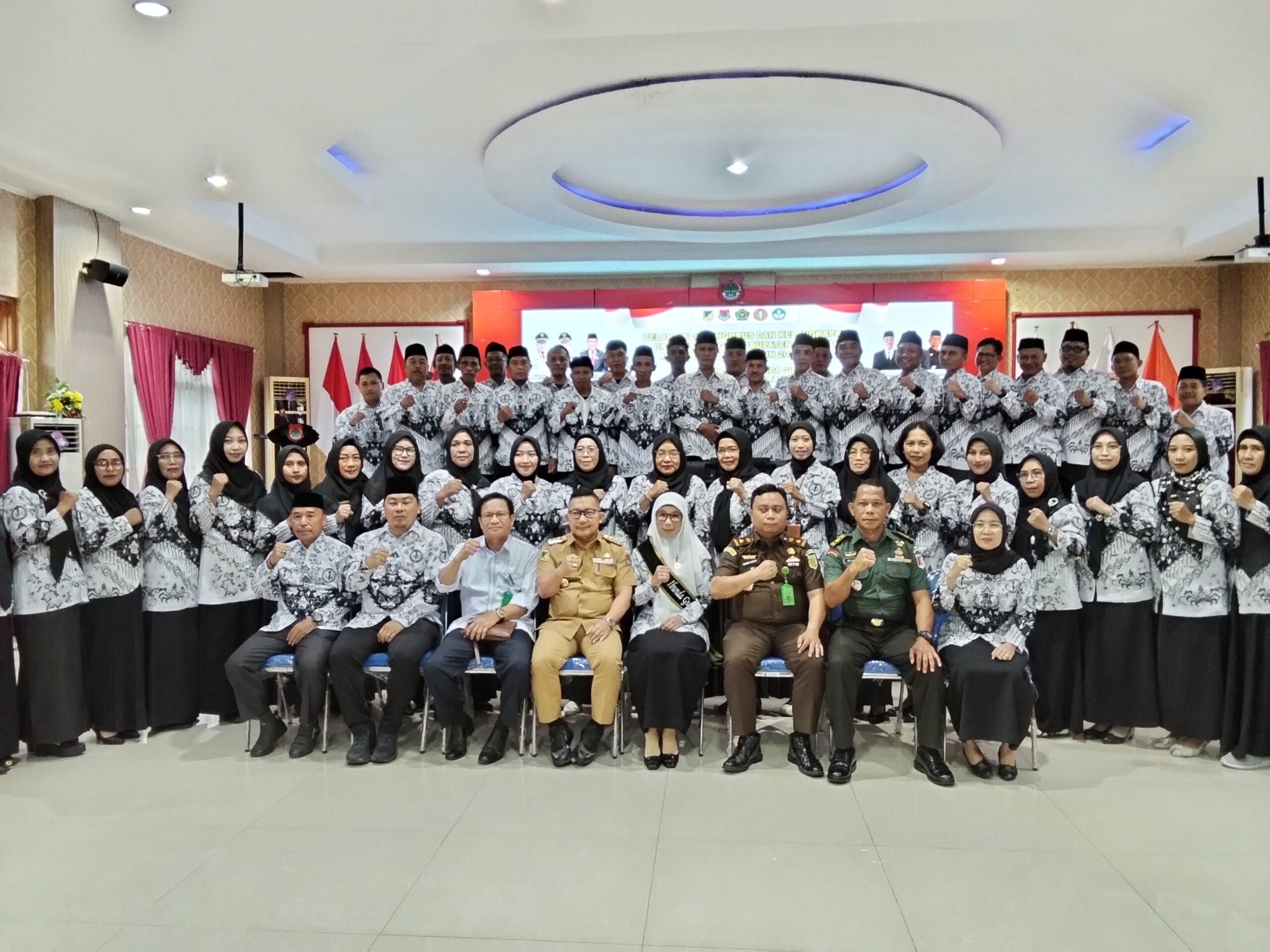 Prosesi pengukuhan digelar di ruang rapat umum kantor Sekretariat Daerah Kabupaten Banggai, Senin (15/9/2025), dihadiri unsur Forkopimda, Kepala Disdikbud Kabupaten Banggai, Syafrudin Hinelo, dan para kepala OPD serta Camat.