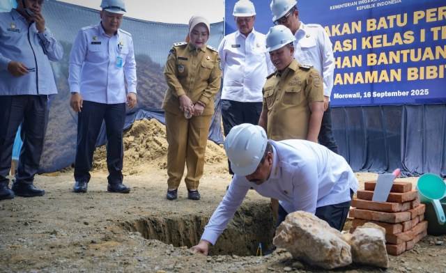 MOROWALI, CS – Bupati Morowali, Iksan Baharudin Abdul Rauf, didampingi Wakil Bupati Iriane Iliyas, menyambut kedatangan Menteri Imigrasi dan Pemasyarakatan Indonesia, Agus Andrianto, pada peletakan batu pertama pembangunan Kantor Imigrasi Kelas I Tempat Pemeriksaan Imigrasi (TPI) Morowali di Kawasan Terpadu Mandiri (KTM) Bungku Tengah, Selasa (16/9/2025).