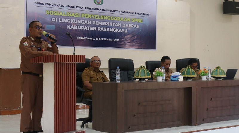 PASANGKAYU, CS – Pemerintah Kabupaten (Pemkab) Pasangkayu melalui Dinas Komunikasi, Informatika, Statistik, dan Persandian (Diskominfopers), menggelar Sosialisasi Penyelenggaraan Sistem Pemerintahan Berbasis Elektronik (SPBE), di Aula Hotel Mutiara, Selasa (23/9/2025).