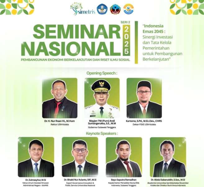 KOLAKA, CS – Fakultas Ilmu Sosial dan Ilmu Ekonomi (FISIE) Universitas Sembilanbelas November (USN) Kolaka berencana menyelenggarakan Seminar Nasional Pembangunan Ekonomi Berkelanjutan dan Riset Ilmu Sosial (SIMETRIS) Tahun 2025.