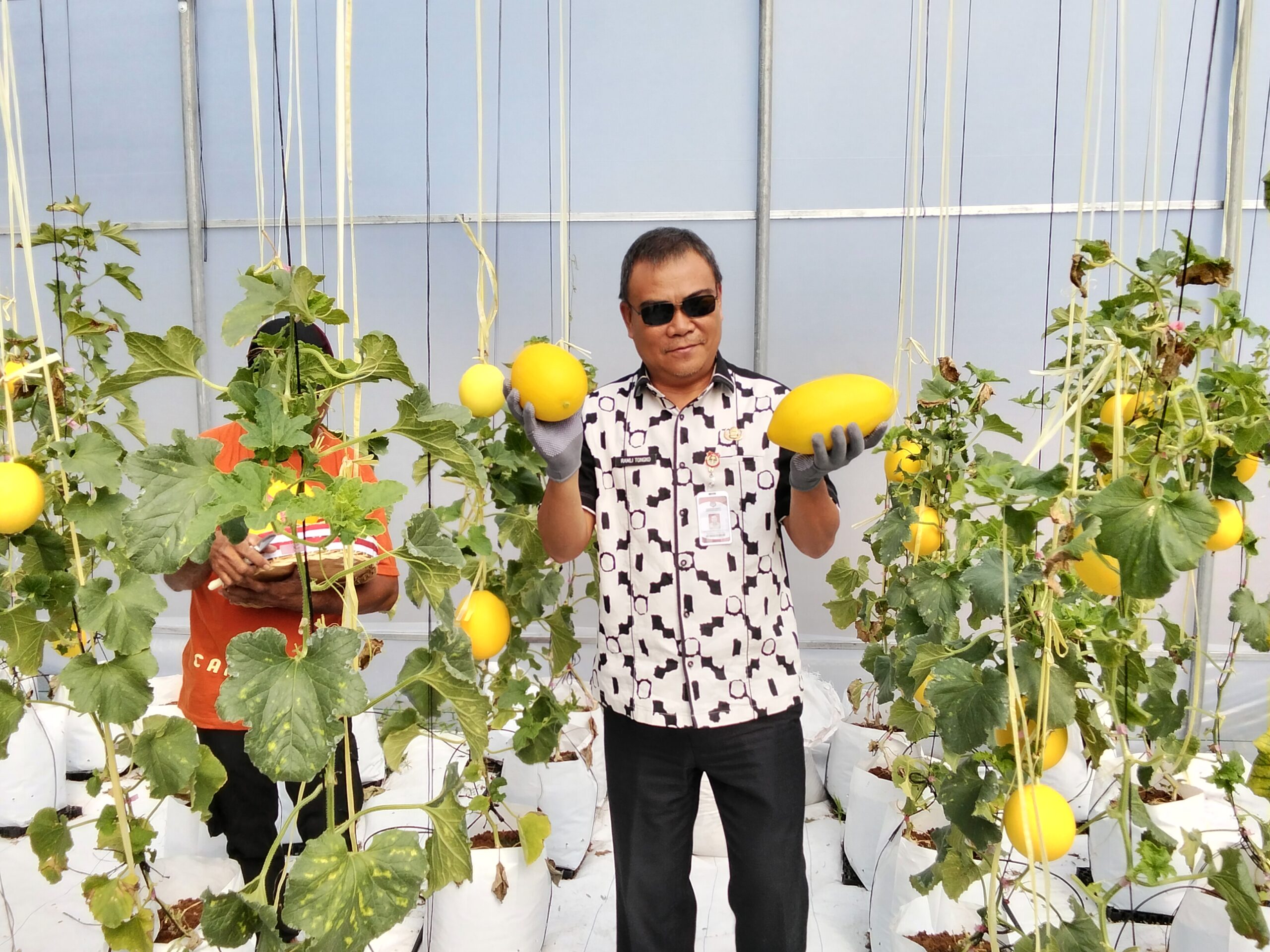 BANGGAI,CS-Dinas Tanaman Pangan Hortikultura dan Perkebunan (TPHP) Kabupaten Banggai menggelar panen buah melon (cucumis melo), di kebun percontohan, rumah jabatan Bupati, Bukit Halimun, Kamis (2/10/2025).