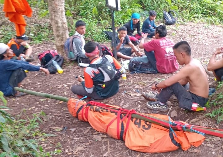 Proses evakuasi dilakukan, Minggu (12/10/2025) setelah jasad ditemukan sekitar 200 meter dari area puncak gunung.