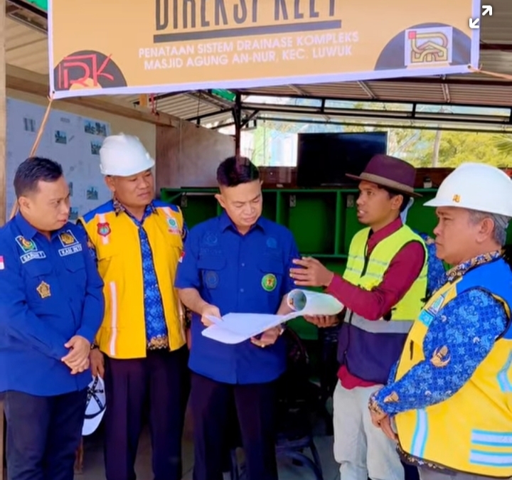 BANGGAI,CS-Dinas Pekerjaan Umum dan Penataan Ruang (PUPR) Kabupaten Banggai dan Kejaksaan Negeri Banggai melakukan Monitoring dan Evaluasi (Monev) proyek pembangunan drainase di kompleks Masjid Agung Luwuk.