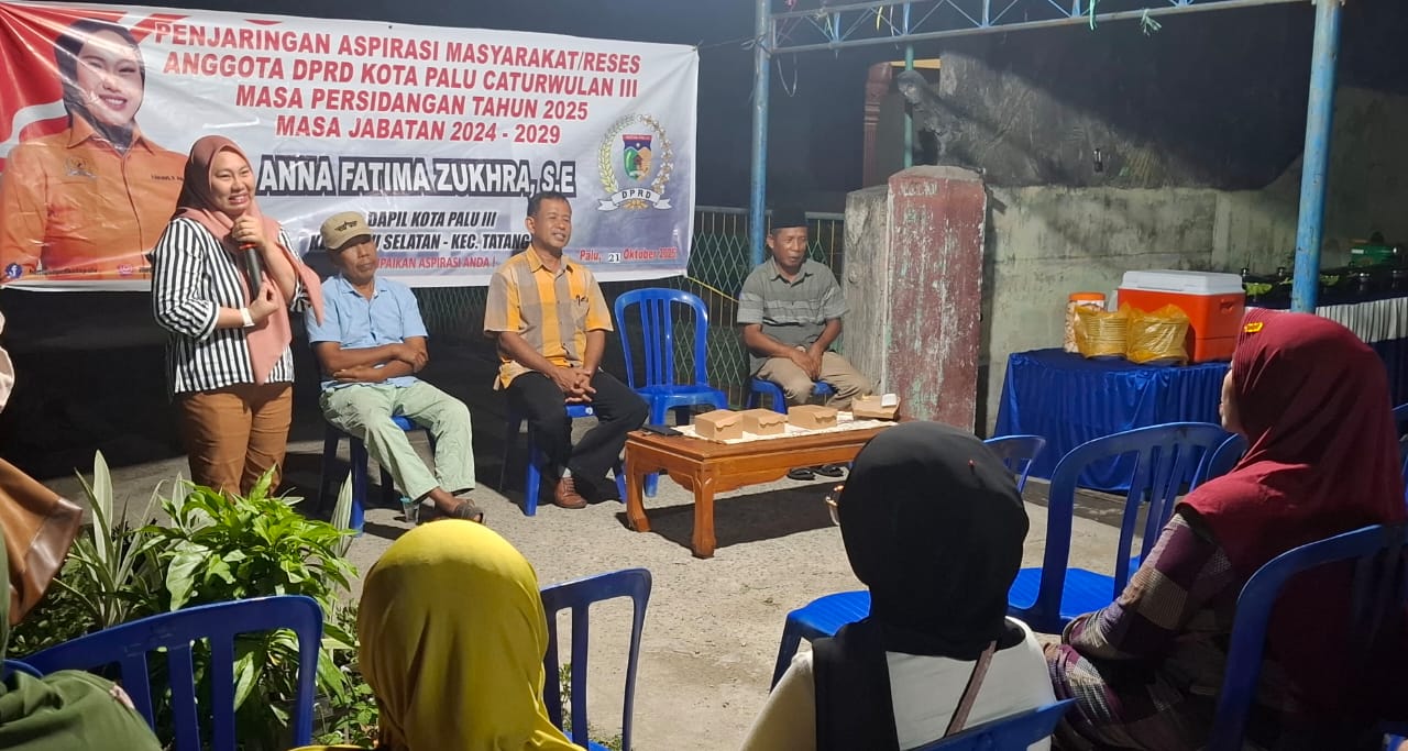 PALU, CS – Anggota Dewan Perwakilan Rakyat Daerah (DPRD) Kota Palu, dari Fraksi Hanura, Anna Fatima Zukhra, melaksanakan kegiatan Reses Masa Persidangan Caturwulan III Tahun Sidang 2025, di Jalan Gelatik, Kelurahan Birobuli Utara, Kecamatan Palu Selatan, Selasa (21/10/2025) malam.