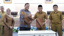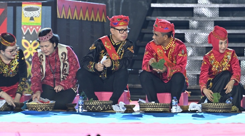 Gubernur. Anwar Hafid hadir bersama Wakil Menteri Dalam Negeri RI, Bima Arya Sugiarto, dan disambut hangat oleh masyarakat melalui tradisi adat Molimbu, yakni makan bersama sebagai simbol persaudaraan dan gotong royong.