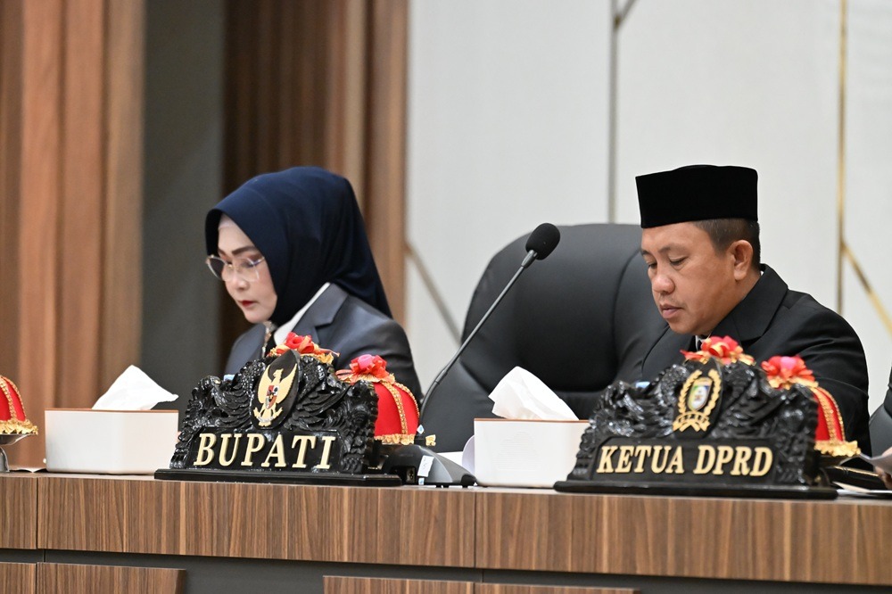 Acara paripurna turut dihadiri Wakil Bupati Iriane Iliyas, anggota DPRD, unsur Forkopimda, serta pejabat eselon II dan III. (IKP)