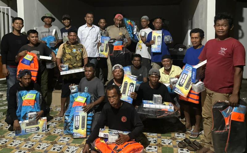 Perlengkapan yang diberikan meliputi alat tangkap ikan, lampu tenaga surya, senter waterproof, dan pelampung.