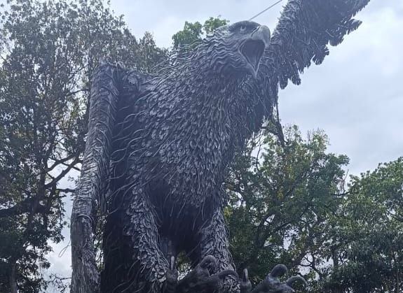 PALU, CS – Sayap Patung Burung Garuda yang berdiri di kawasan Taman Nasional Palu (TNP), Jalan Hasanuddin, Kota Palu, Sulawesi Tengah, dilaporkan patah.