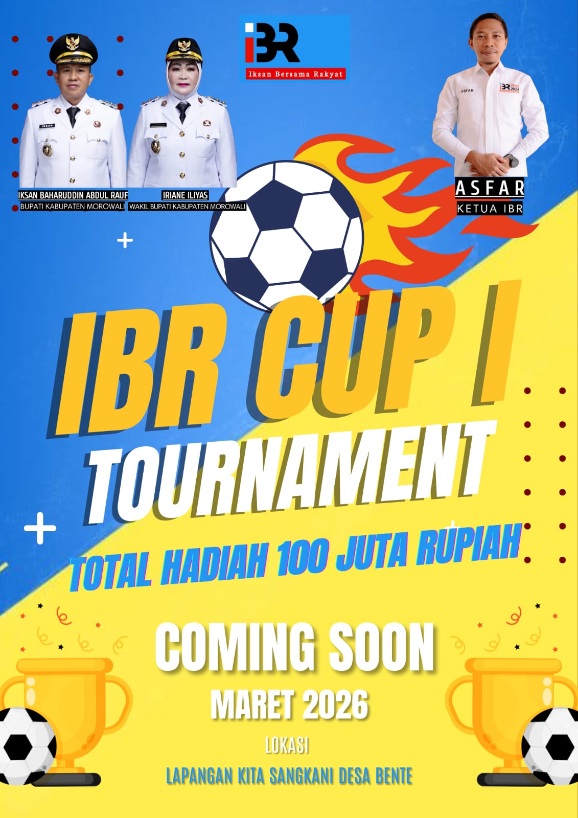 Tim Kerja IBR akan menggelar Open Turnamen Sepak Bola IBR Cup I dengan total hadiah sebesar Rp100 juta.