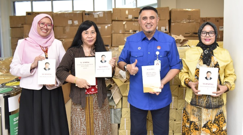 Koleksi buku yang diterima mencakup berbagai judul strategis, termasuk karya-karya terkait pemikiran dan kebijakan Presiden Tiongkok, Xi Jinping, seperti seri The Governance of China.