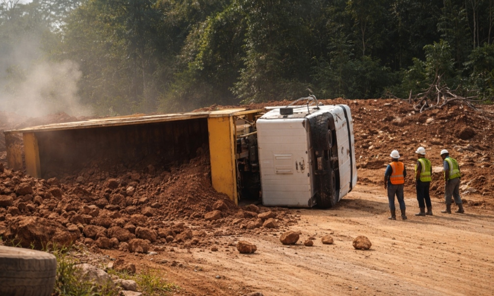 MOROWALI, CS – Satu unit dump truck milik PT Bumi Kalaena Persada (BKP) mengalami kecelakaan di jalan hauling tambang di Desa Siumbatu, Kecamatan Bahodopi, Kabupaten Morowali.