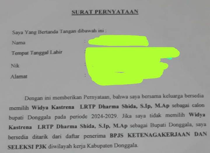 Surat Pernyataan Dukung Balon Bupati Donggala Viral, Ini Tanggapan Ombudsman