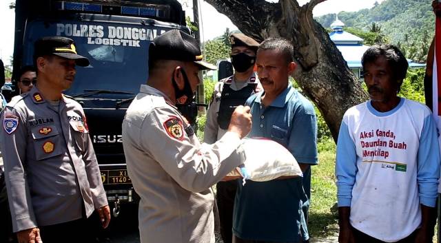 Ringankan Beban Masyarakat, Polres Donggala Salurkan Bantuan Beras