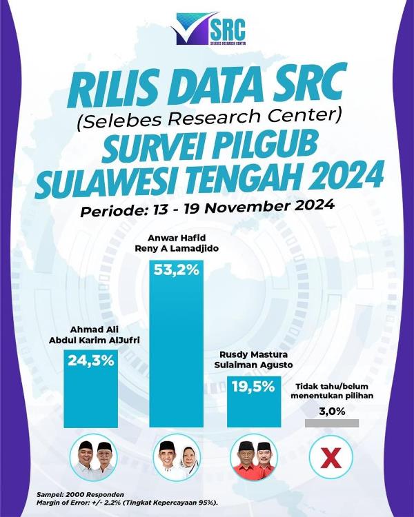 Survei SRC Tebaru: Anwar Hafid – Reny Lamadjido Pertahankan Keunggulan dengan Elektabilitas 53,2%